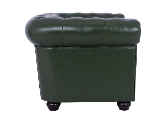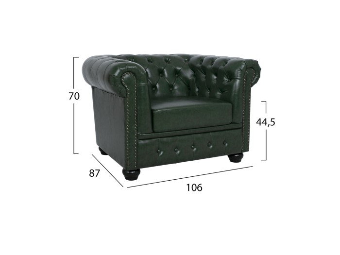 Η πολυθρόνα POLINA σε ΚΥΠΑΡΙΣΣΙ χρώμα με ξύλινα πόδια σε ΜΑΥΡΟ χρώμα είναι επιβλητική. Το χαρακτηριστικό που κάνει αυτή την πολυθρόνα να ξεχωρίζει είναι ότι η τεχνοτροπία της είναι σε στυλ Chesterfield, πράγμα που δίνει την αίσθηση κύρους και πολυτέλειας οπουδήποτε κι αν χρησιμοποιηθεί, ενώ η επένδυση με PU leather σε όλη την πολυθρόνα και η βαθιά καπιτονέ τεχνοτροπία τόσο στην κοντή πλάτη όσο και στα φαρδιά και γυριστά μπράτσα, υπηρετεί ακριβώς το στυλ Chesterfield.