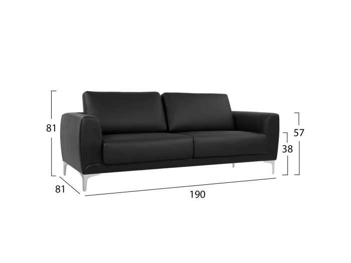 Καναπές τριθέσιος με τεχνόδερμα σε μαύρη απόχρωση 190x81x81 εκ.