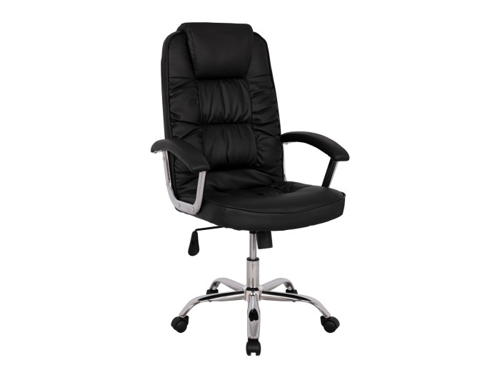 Διευθυντική καρέκλα γραφείου “REESE” σε μαύρο χρώμα. Μια «πλούσια» καρέκλα γραφείου με ψηλά μπράτσα με ελαφριά κλίση και επενδυμένα με μια στρώση αφρολέξ σε PU δέρμα. Η πλάτη είναι ψηλή με πλούσια στρώση από αφρώδη υλικά και έξτρα ενσωματωμένο μαξιλάρι για το κεφάλι για άνεση κατά την χρήση και υποστηρίζει ολόκληρο τον κορμό σας, ενώ είναι επενδυμένη με υψηλής ποιότητας PU δέρμα , όπως επίσης και το φαρδύ και αναπαυτικό κάθισμα με την αναπαυτική επιφάνεια. Η βάση είναι χρωμιωμένη σε σχήμα «αστέρι» με κυρτά πόδια και μαύρα ροδάκια.
