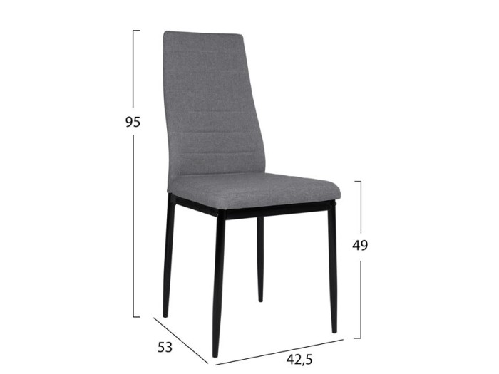 Τέσσερις καρέκλες κουζίνας από μεταλλικό σκελετό σε μαύρο χρώμα και επένδυση από ύφασμα σε γκρι απόχρωση.