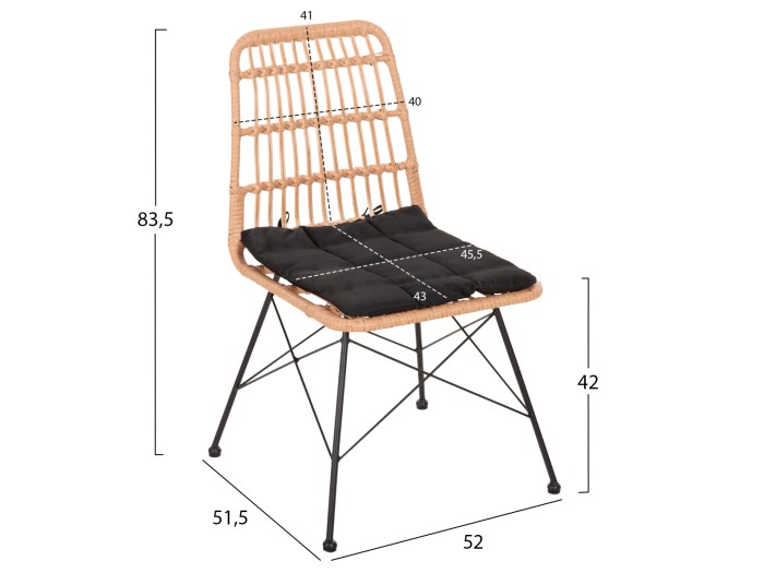 Η επένδυση σε όλο το σετ είναι από συνθετικό Rattan σε πλέξη wicker. Στα περισσότερα έπιπλα κήπου και γενικά σε έπιπλα για εξωτερικούς χώρους χρησιμοποιείται συνθετικό Rattan από PVC, δηλαδή τεχνητές ίνες υψηλής ποιότητας. Αυτό δίνει στην κατασκευή εξαιρετική αντοχή και ανθεκτικότητα σε ακραίες συνθήκες ζέστης ή κρύου.