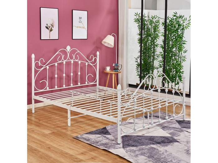 Το κρεβάτι ΗΜ576.02 είναι ένα μεταλλικό κρεβάτι σε ΛΕΥΚΟ χρώμα και σε διάσταση διπλού στρώματος. Το ψηλό κεφαλάρι και το ελαφρώς κοντύτερο ποδαρικό (δηλαδή το κάτω μέρος απέναντι από το κεφαλάρι) φέρουν καλαίσθητα σχέδια από μέταλλο και αισθητικά είναι σίγουρο ότι θα τραβήξει τα βλέμματα και θα απογειώσει το υπνοδωμάτιό σας. Τα πόδια του κρεβατιού είναι ψηλά με αποτέλεσμα να υπάρχει αρκετός χώρος από κάτω για να τον χρησιμοποιήσετε όπως θέλετε, ενώ το ποδαρικό φτάνει μέχρι χαμηλά, δίνοντας την εντύπωση ότι πατάει στο έδαφος. Οι τάβλες στήριξης του στρώματος είναι φυσικά και αυτές μεταλλικές.