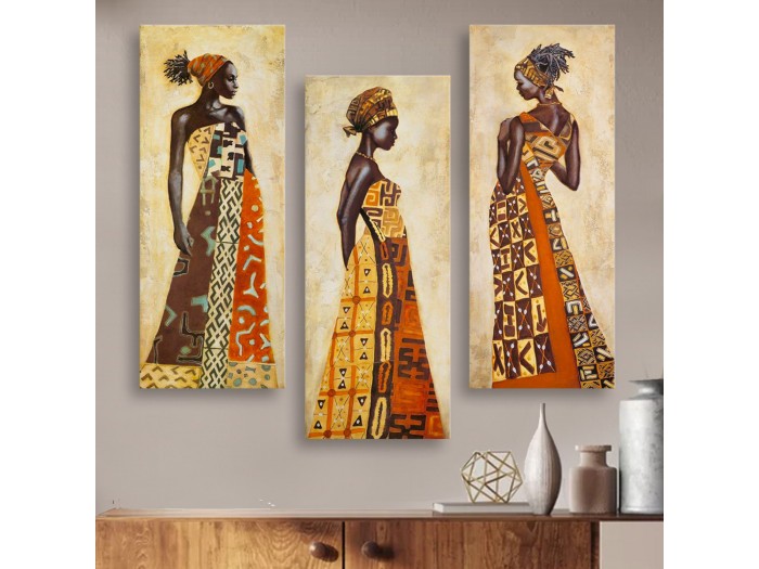 Διακοσμητικός τρίπτυχος πίνακας σε τυπωμένο mdf σε Africal style women.