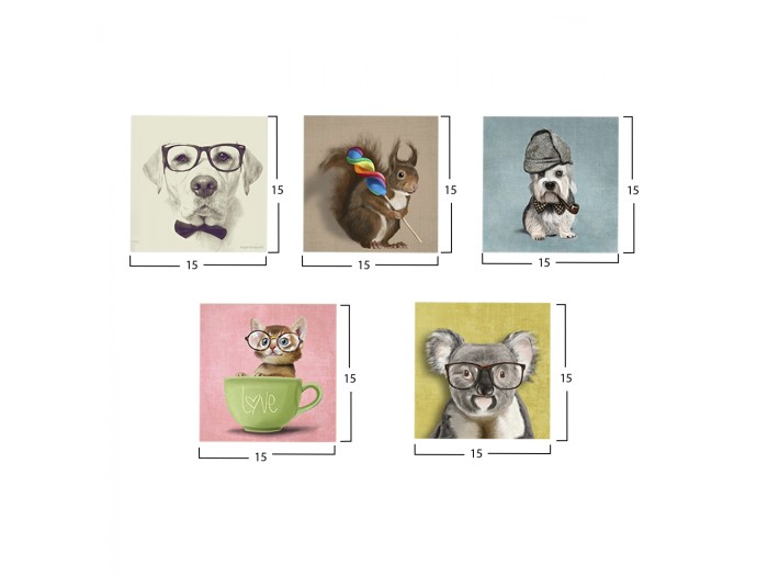 Διακοσμητικός πεντάπτυχος πίνακας σε τυπωμένο mdf σε σχέδιο clever pets.