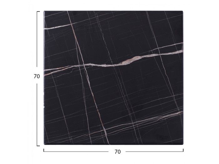 Επιφάνεια τραπεζιού werzalit 70X70 σε χρώμα μαύρο μάρμαρο με λευκές και μπεζ λεπτομέρειες.