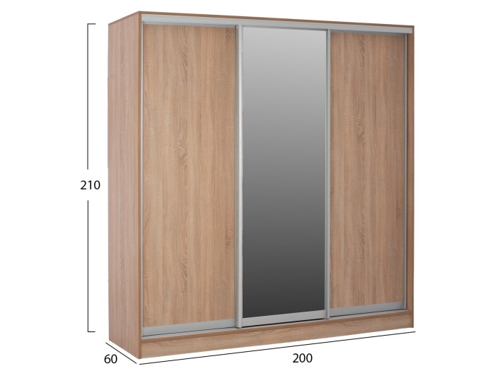 Συρόμενη ντουλάπα, σε sonama απόχρωση, με τρεις πόρτες η μια εκ των οποίων είναι καθρέπτης.