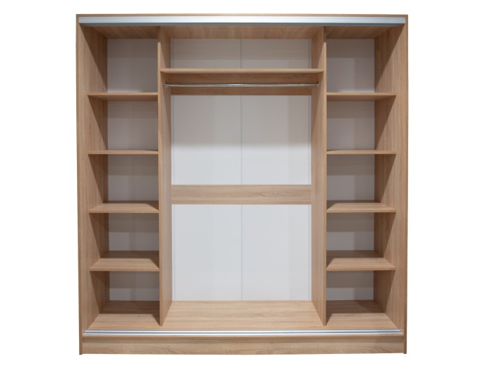 Στο κέντρο έχει ένα μεγάλο βαθύ ράφι στο πάνω μέρως, πλήρως κατάλληλο για αποθήκευση κλινοσκεπασμάτων, και μια INOX μπάρα από κάτω για κρέμαση ρούχων.