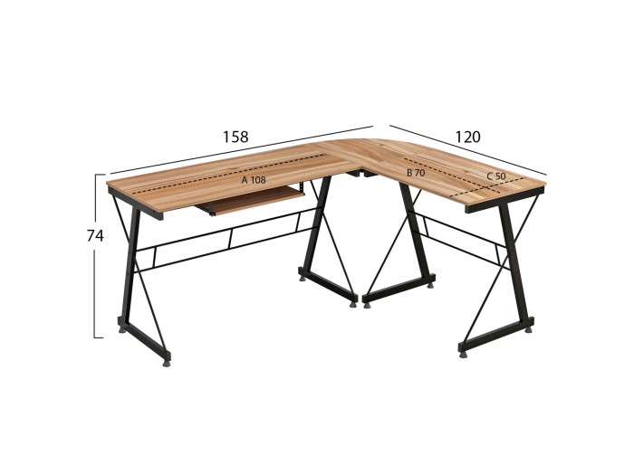 Γραφείο γωνία με κομψό και λιτό σχεδιασμό, κατασκευασμένο από ανθεκτική μελαμίνη γωνία σε καρυδί απόχρωση με μεταλλικό μαύρο σκελετό.