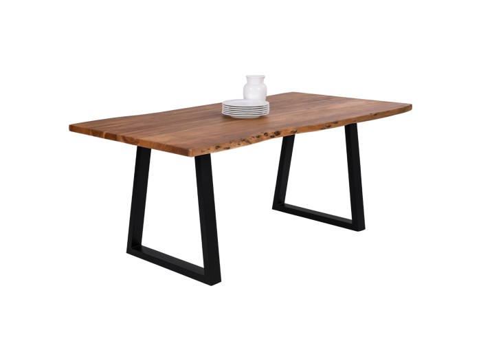 Το τραπέζι είναι κατασκευασμένο από μασίφ ξύλο ακακίας σε φυσική απόχρωση και μέταλλο σε μαύρο χρώμα.