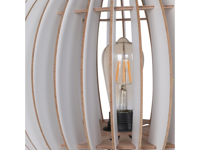 Το φωτιστικό είναι κατασκευασμένο από ενισχυμένο MDF, με μεγάλη αντοχή στην φθορά και το χρόνο, σε λευκή απόχρωση.