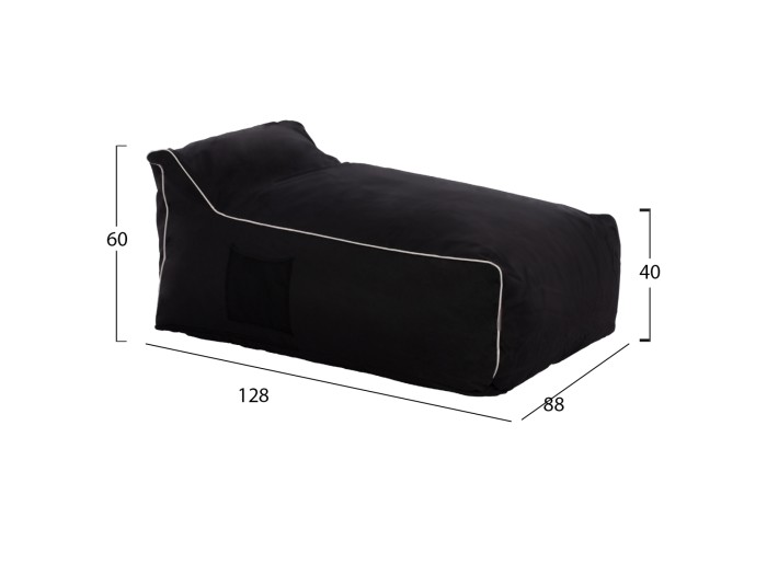 Το ΠΟΥΦ αυτό, σε μαύρο χρώμα, έχει πολύ άνετο και αναπαυτικό «κάθισμα», που προσφέρει τη δυνατότητα να χρησιμοποιηθεί είτε σαν πολυθρόνα, είτε σαν ξαπλώστρα, μιας και έχει σχήμα με προσκέφαλο.