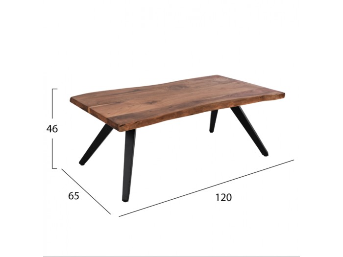 Ανακαλύψτε το μοναδικό χειροποίητο τραπέζι σαλονιού HM8365.11 με επιφάνεια από φυσικό μασίφ ξύλο ΑΚΑΚΙΑΣ. To σχήμα είναι ορθογώνιο και στηρίζεται σε 4 μαύρα μεταλλικά πόδια με τετράγωνο κόψιμο και σε σχήμα Λ στις 2 πλευρές του τραπεζιού. Το τραπέζι είναι πανέμορφο και λιτό σε φιλοσοφία, παράλληλα όμως φέρνει την φύση στο σαλόνι σας. Είναι γνωστό άλλωστε ότι η φύση, γενικά, λειτουργεί καταπραϋντικά στην ανθρώπινη ψυχολογία κι ένα τέτοιο τραπέζι θα αποτελέσει ένα «ζεστό» σημείο συγκέντρωσης στο σαλόνι σας.