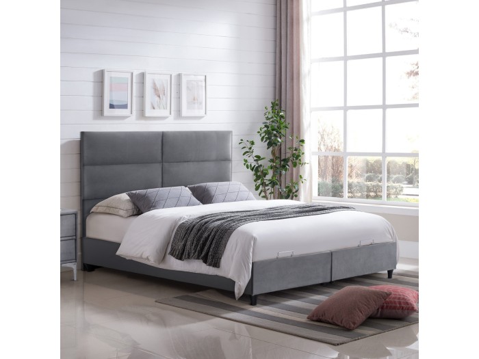 Εμείς σίγουρα μπορούμε να σας εξασφαλίσουμε έναν «βασιλικό» ύπνο! Με το κρεβάτι MILO δεν θα ζητήσετε ποτέ κάτι άλλο. Το κεφαλάρι είναι ψηλό και επενδυμένο με καπιτονέ τεχνοτροπία σε μεγάλα ορθογώνια, ενώ και όλη η επένδυση του κρεβατιού είναι από βελούδινο ύφασμα. Το ΓΚΡΙ χρώμα σε όλο το κρεβάτι είναι εντυπωσιακό και μπορεί να συνδυαστεί με πληθώρα διακοσμητικών μοτίβων. Όμως, το κύριο χαρακτηριστικό αυτού του κρεβατιού είναι ότι δεν ακολουθεί την κλασική κατασκευή με τις τάβλες του σομιέ για την στήριξη του στρώματος, αλλά αντίθετα αποτελείται από μια συνεχόμενη επιφάνεια (2 μοριοσανίδες) πάνω στην οποία τοποθετείται το στρώμα. Επιπλέον, η κάθε επιφάνεια από μοριοσανίδα ανασηκώνεται με μεταλλικό μηχανισμό ασφαλείας με 4 αμορτισέρ και μεταλλικές λαβές προσφέροντας έναν μεγάλο αποθηκευτικό χώρο. Σε διαστάσεις στρώματος 160x200 εκ. θα χωρέσει κάθε σας όνειρο!