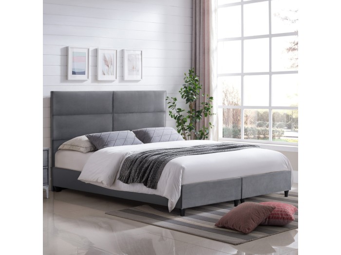 Εμείς σίγουρα μπορούμε να σας εξασφαλίσουμε έναν «βασιλικό» ύπνο! Με το κρεβάτι MILO δεν θα ζητήσετε ποτέ κάτι άλλο. Το κεφαλάρι είναι ψηλό και επενδυμένο με καπιτονέ τεχνοτροπία σε μεγάλα ορθογώνια, ενώ και όλη η επένδυση του κρεβατιού είναι από βελούδινο ύφασμα. Το ΓΚΡΙ χρώμα σε όλο το κρεβάτι είναι ουδέτερο και μπορεί να συνδυαστεί με πληθώρα διακοσμητικών μοτίβων. Όμως, το κύριο χαρακτηριστικό αυτού του κρεβατιού είναι ότι δεν ακολουθεί την κλασική κατασκευή με τις τάβλες του σομιέ για την στήριξη του στρώματος, αλλά αντίθετα αποτελείται από μια συνεχόμενη επιφάνεια (2 μοριοσανίδες) πάνω στην οποία τοποθετείται το στρώμα! Σε King Size διαστάσεις στρώματος 180x200 εκ. θα χωρέσει κάθε σας όνειρο!