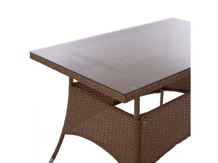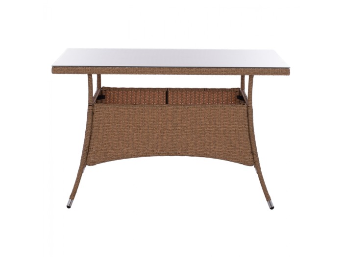 Το τραπέζι είναι κατασκευασμένο από μεταλλικό σκελετό, εξαιρετικής ποιότητας με αντοχή στη φθορά και το χρόνο, και επένδυση με πλεκτό wicker/rattan.