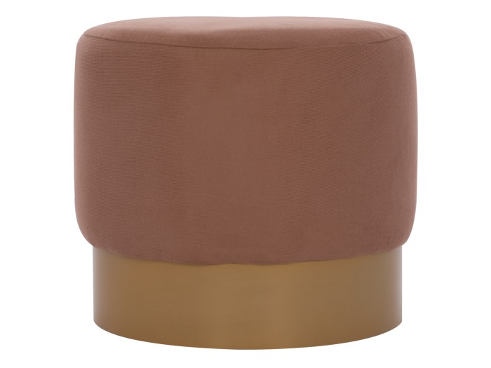 Η ιδιαιτερότητα αυτού του σκαμπό, είναι ότι αντί για πόδια στηρίζεται όμορφα σε μια κυλινδρική βάση που έρχεται ως φυσική συνέχεια του καθίσματος, σε χρυσό χρώμα.