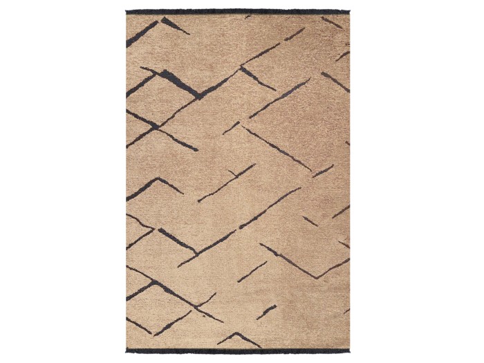 Αυτό το χαλί είναι ΑΝΟΙΧΤΟ ΚΑΦΕ με μαύρες λεπτομέρειες, και θα δώσει μια μοντέρνα αίσθηση στο σαλόνι σας.