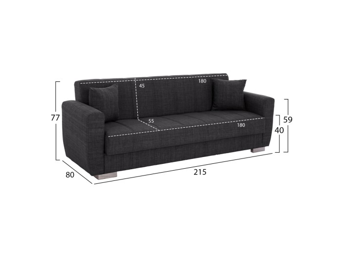 Το κύριο χαρακτηριστικό τους, όμως, είναι ότι πέφτει η πλάτη και μετατρέπονται σε ένα άνετο κρεβάτι για έκτακτες περιπτώσεις, μέσω ενός εύχρηστου μηχανισμού «κλικ-κλακ». Συνέπεια αυτού, βέβαια, είναι και η ύπαρξη αποθηκευτικού χώρου κάτω από το κάθισμα των καναπέδων, ο οποίος πάντα είναι χρήσιμος, ειδικά σε φοιτητικά σπίτια. Τέλος, τα πόδια τους είναι φαρδιά και χαμηλά δίνοντας στιβαρότητα σε όλη την κατασκευή.