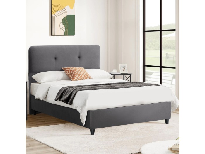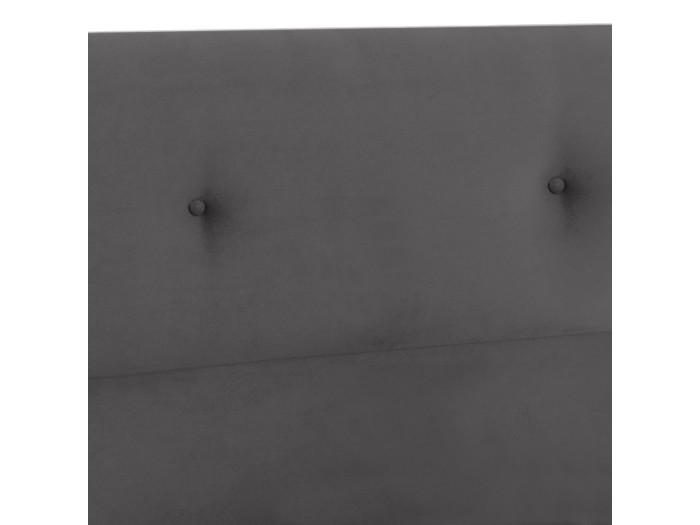 Το κεφαλάρι είναι ψηλό και έχει διακόσμηση με 2 μόνο τρουκς (κουμπάκια), ενώ και όλη η επένδυση του κρεβατιού είναι από υπέροχο βελούδινο ύφασμα. Το ΓΚΡΙ χρώμα σε όλο το κρεβάτι είναι ουδέτερο και μπορεί να συνδυαστεί με πληθώρα διακοσμητικών μοτίβων. Όμως, το κύριο χαρακτηριστικό αυτού του κρεβατιού είναι ότι δεν ακολουθεί την κλασική κατασκευή με τις τάβλες του σομιέ για την στήριξη του στρώματος, αλλά αντίθετα αποτελείται από μια συνεχόμενη επιφάνεια πάνω στην οποία τοποθετείται το στρώμα! Σε διαστάσεις στρώματος 120x200 εκ.