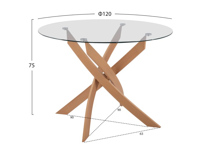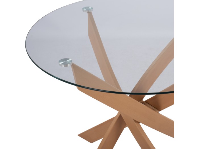 ΗΜ8733.02 ΤΡΑΠΕΖΙ ΣΤΡΟΓΓΥΛΟ γυάλινο-----Ανακαλύψτε την καινούρια προσθήκη στην γκάμα των προϊόντων μας. Το στρογγυλό τραπέζι με επιφάνεια από διάφανο γυαλί ασφαλείας και μεταλλικά πόδια με μοντέρνα γεωμετρία σε χρώμα και υφή φυσικού ξύλου. Τα τραπέζια ροτόντες είναι ιδιαιτέρως πρακτικά και όμορφα γιατί δεν έχουν κορυφές και «αρχηγούς», ούτε και γωνίες ή πόδια στις γωνίες που, πολλές φορές, δημιουργούν άβολες καταστάσεις. Με το ΗΜ8733.02 το μοντέρνο design συναντά την καθαρότητα του γυαλιού και δίνει μια καλλιτεχνική αίσθηση στον χώρο σας.