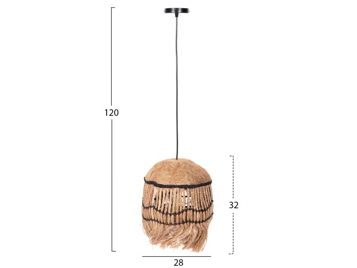 Hm7805- Kρεμαστό φωτιστικό---- Αν επιθυμείτε να διακοσμήσετε το χώρο σας με ένα φωτιστικό σε boho στυλ, αυτό είναι μια χαρακτηριστική επιλογή. Είναι ένα μονόφωτο φωτιστικό με σφαιρικό «καπέλο» από ίνες και σχοινί κάνναβης Μανίλας σε φυσικό χρώμα, που το κάτω μέρος του αποτελείται από κρόσια από τις ίδιες ίνες. Ένα πανέμορφο φωτιστικό που θα ενθουσιάσει τους λάτρεις του συγκεκριμένου στυλ διακόσμησης.