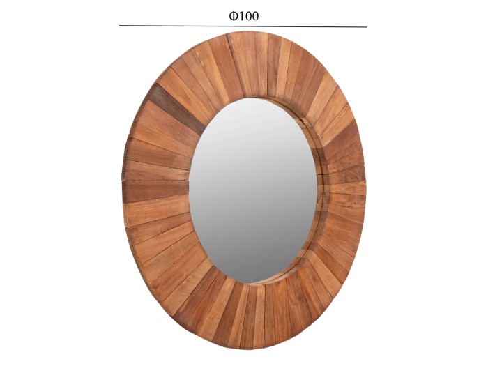 O καθρέπτης ΗΜ7726 είναι πραγματικά ένα όμορφο κομμάτι στην διακόσμηση του σπιτιού σας! Το design του είναι κλασικό αλλά με αριστοτεχνικά κατασκευασμένη κυκλική διάταξη των ξύλων, τα οποία στο κέντρο τους «φιλοξενούν» τον καθρέπτη. Τα ξύλα είναι στο φυσικό τους χρώμα και οι διαστάσεις όλης της κατασκευής είναι «πλούσιες».