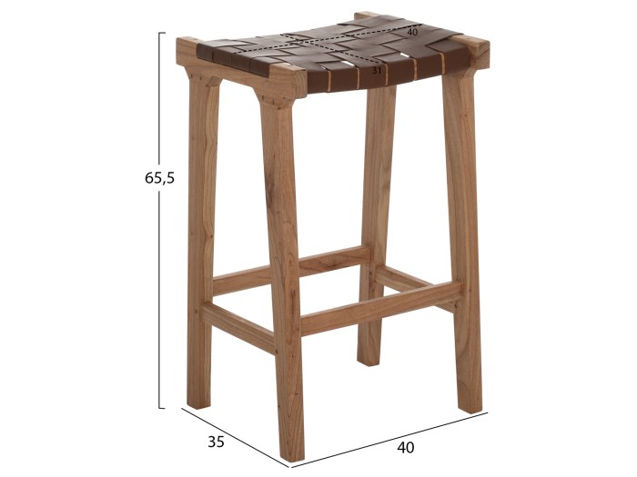Το σκαμπό ΗΜ9382.01 χωρίς μπράτσα ακολουθεί την κλασική σχεδιαστική γραμμή. Ο πανέμορφος σκελετός είναι από ποιοτικό ξύλο, ενώ το κάθισμα αποτελείται από τετραγωνισμένα πλεγμένο PU δέρμα άριστης ποιότητας. Οι σχεδιαστικές γραμμές είναι κομψές και με γνώμονα την άνεση του χρήστη, με χαρακτηριστικό παράδειγμα την ύπαρξη των συνδέσεων των ποδιών του σκαμπό, που χρησιμεύουν και ως υποπόδια. Το ξύλο έχει το φυσικό του χρώμα που μπορεί άνετα να συνδυαστεί με διάφορα διακοσμητικά μοτίβα ενώ το PU δέρμα είναι ΚΑΦΕ. Το σκαμπό θα αποτελέσει το κέντρο ενδιαφέροντος οπουδήποτε και αν τοποθετηθεί.