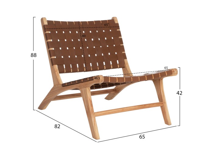 Η καρέκλα FELIPE είναι μια κοντή και φαρδιά καρέκλα χωρίς μπράτσα απαράμιλλης ομορφιάς. Ο πανέμορφος σκελετός της είναι από ποιοτικό ξύλο, ενώ τόσο η μεσαίου ύψους πλάτη όσο και το φαρδύ κάθισμα αποτελούνται από τετραγωνισμένα πλεγμένο PU δέρμα άριστης ποιότητας. Οι σχεδιαστικές γραμμές της πολυθρόνας είναι κομψές και με γνώμονα την άνεση του χρήστη, με χαρακτηριστικό παράδειγμα το κοντό κάθισμα με την έντονη κλίση και την πλάτη με την επίσης χαρακτηριστική κλίση προς τα πίσω. Το ξύλο έχει το φυσικό του χρώμα που μπορεί άνετα να συνδυαστεί με διάφορα διακοσμητικά μοτίβα ενώ το PU δέρμα είναι ΚΑΦΕ. Η πολυθρόνα θα αποτελέσει το κέντρο ενδιαφέροντος οπουδήποτε και αν τοποθετηθεί.