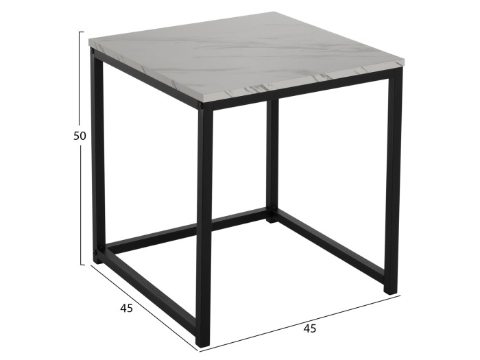 ΗΜ8762.12 τραπεζάκια σαλονιού----- Τα τραπεζάκια ζιγκόν GRELAY θα σας ενθουσιάσουν με το στυλ και την πρακτικότητά τους. Μπορείτε να δημιουργήσετε πρωτότυπες διακοσμητικές συνθέσεις, δίνοντας νέα πνοή στον χώρο σας με αυτό το σετ. Πρόκειται για 2 τετράγωνα τραπεζάκια ένα ψηλότερο κι ένα πιο κοντό που αποθηκεύεται κάτω από το ψηλό. Τα πόδια σε στυλ βάση, είναι μεταλλικά σε μαύρο χρώμα, ενώ οι επιφάνειές τους είναι σε απομίμηση λευκού μαρμάρου από MDF.