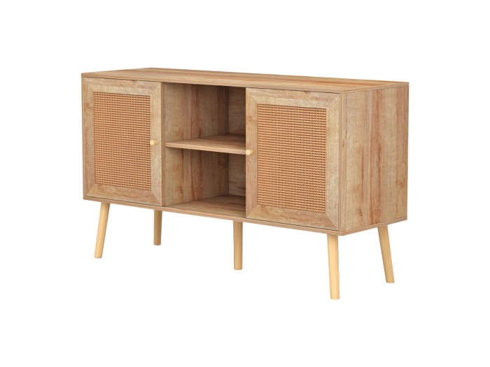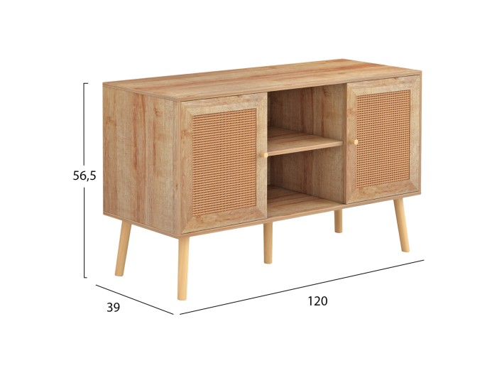 Το έπιπλο τηλεόρασης μελαμίνης COLM είναι μια ποιοτική και όμορφη πρόταση για το σαλόνι. To ΦΥΣΙΚΟ χρώμα σε όλη την κατασκευή είναι ουδέτερο και μπορεί να συνδυαστεί με διάφορα άλλα χρώματα. Το COLM είναι λιτό και πέρα από την κύρια επιφάνειά του, διαθέτει δύο ντουλάπια δεξιά και αριστερά με ράφι και με πόρτες από συνθετικό Rattan. Στο κέντρο υπάρχει ανοιχτός χώρος τοποθέτησης συσκευών και μάλιστα υπάρχουν τρύπες στην πλάτη για τα καλώδια. Τα πόδια είναι από συμπαγές ξύλο και προσφέρουν στιβαρότητα και καλαισθησία.