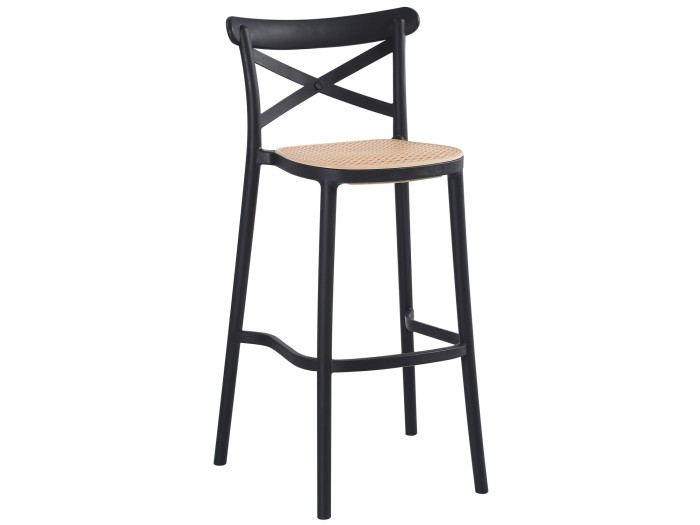 Το σκαμπό CONN είναι ένα λιτό σκαμπό για μπαρ, που έχει όλα όσα θα θέλατε από ένα τέτοιο έπιπλο. Είναι ποιοτικό και κομψό στην όψη, και σίγουρα τραβάει τα βλέμματα. Όλο το σκαμπό είναι από μονοκόμματο πολυπροπυλένιο σε ΜΑΥΡΟ χρώμα με σχετικά χαμηλή πλάτη η οποία έχει ένα κλασικό χιαστί σχέδιο. Το κάθισμα είναι σε ΜΠΕΖ απόχρωση και είναι σε στυλ "ψάθας" πολυπροπυλενίου. Επίσης, τα πόδια ενώνονται με ένα πρακτικότατο υποπόδιο. To σκαμπό είναι στοιβαζόμενο, ελαφρύ και άνετο, και θα γίνει το αγαπημένο κάθισμα σε όποιο χώρο κι αν τοποθετηθεί χάρη στην πρακτικότητά του.