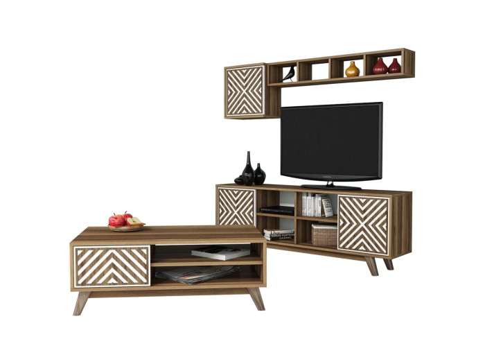Η σύνθεση ΗΜ11853.03 θα αλλάξει την όψη στο σαλόνι σας και θα σας προσφέρει την αναβάθμιση που θέλετε. Αποτελείται από έναν συνδυασμό επίπλων για την τηλεόρασή σας με μονάδα δαπέδου, επιτοίχιο ράφι και επιτοίχιο ντουλάπι, και ένα τραπεζάκι σαλονιού. Χαρακτηριστικό όλης της σύνθεσης είναι οι πολλοί χώροι αποθήκευσης και τοποθέτησης αντικειμένων. Όλη η σύνθεση είναι της ίδιας σειράς και τα κυρίαρχα χρώματα είναι το ΚΑΡΥΔΙ και το ΛΕΥΚΟ.