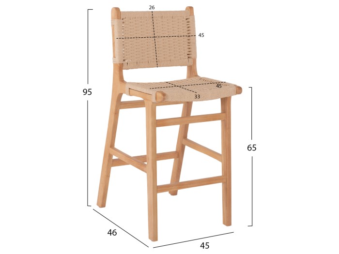 Το σκαμπό ΗΜ9332.01 χωρίς μπράτσα είναι απαράμιλλης ομορφιάς. Ο πανέμορφος σκελετός του είναι από ποιοτικό εξωτικό ξύλο, ενώ τόσο η μεσαίου ύψους πλάτη όσο και το άνετο κάθισμα αποτελούνται από αριστοτεχνικά πλεγμένο σχοινί άριστης ποιότητας. Οι σχεδιαστικές γραμμές του σκαμπό είναι κομψές και με γνώμονα την άνεση του χρήστη, ενώ το ξύλο έχει το φυσικό του χρώμα που μπορεί άνετα να συνδυαστεί με διάφορα διακοσμητικά μοτίβα. Το σκαμπό θα αποτελέσει το κέντρο ενδιαφέροντος οπουδήποτε και αν τοποθετηθεί.