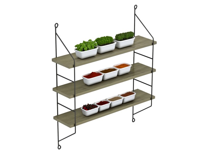 Το τριπλό ράφι τοίχου ACHALA συνδυάζει το μοντέρνο design με την πρακτικότητα. Αποτελείται από 3 ίδιου μεγέθους ράφια σε OLIVE GREY χρώμα. Τα ράφια μοντάρονται σε έναν μεταλλικό μαύρο σκελετό, ο οποίος βιδώνεται στον τοίχο.