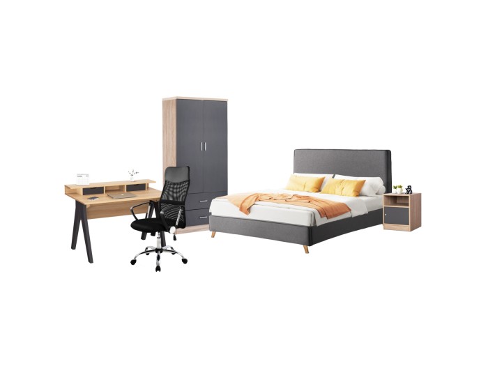 Αυτό το σετ περιλαμβάνει κρεβάτι, κομοδίνο, ντουλάπα, γραφείο, καρέκλα γραφείου.