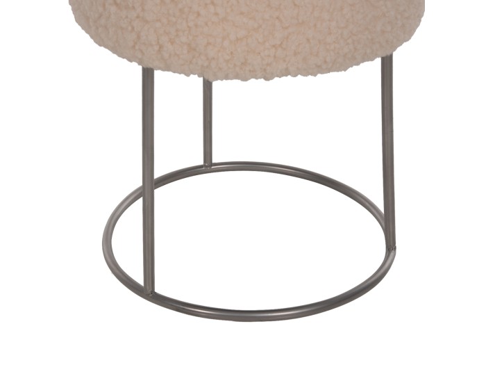 Το σκαμπό KARLO είναι μια μοντέρνα και στιλάτη πρόταση που θα αφήσει το στίγμα του σε όποιο σαλόνι κι αν τοποθετηθεί. Το στρογγυλό του σχήμα με την στρογγυλή ασημί μεταλλική βάση, σε συνδυασμό με το ζεστό μπουκλέ ύφασμα σε ουδέτερο αλλά φωτεινό ΛΕΥΚΟ χρώμα, συνθέτουν ένα όμορφο και πρακτικό έπιπλο, που μπορεί να συνδυαστεί με πληθώρα άλλων χρωμάτων στην διακόσμηση του σαλονιού.