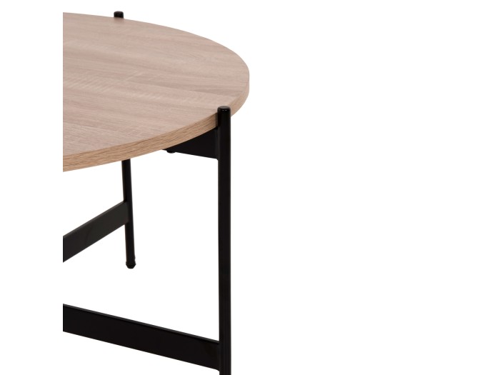 Το τραπεζάκι ΗΜ9588.03 θα σας ενθουσιάσει με το στυλ και την πρακτικότητά του. Πρόκειται για ένα στρογγυλό τραπεζάκι με ιδιαίτερο χαρακτηριστικό ότι η επιφάνεια στηρίζεται σε μια βάση με χιαστί διάταξη. Η βάση είναι μεταλλική σε ΜΑΥΡΟ χρώμα, ενώ η επιφάνεια είναι κατασκευασμένη από MDF σε χρώμα SONOMA.