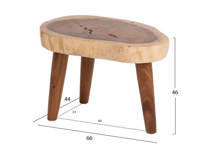 Το τραπεζάκι έχει γίνει από μασίφ ξύλο SUAR. Όταν αναφερόμαστε σε μασίφ, εννοούμε τα ξύλα που κατασκευάζονται ολοκληρωτικά από τον κορμό δέντρου. Το μασίφ είναι η πιο ακριβή επιλογή σε είδος ξύλου αλλά ξεχωρίζει για την διαχρονική αισθητική του.