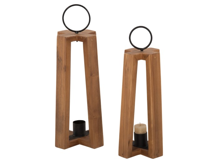 Το σετ 2 φαναριών για κεριά ΗΜ4276 θα το αγαπήσετε με την πρώτη ματιά. Αποτελείται από 2 διαφορετικού ύψους φανάρια κατασκευασμένα από ποιοτικό ξύλο και διαθέτουν μεταλλικό κρίκο για χερούλι ή και για κρέμαση. Το κάθε φανάρι έχει βάση για ένα κερί ενώ το ξύλο είναι στο ΦΥΣΙΚΟ του χρώμα.