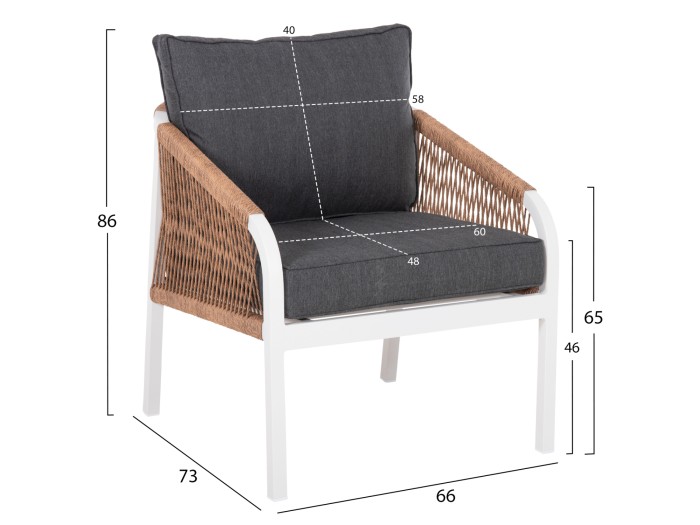 Διαστάσεις πολυθρόνας: 66x73x86Y εκ.--Ύψος καθίσματος: 46 εκ.---Ύψος μπράτσου: 65 εκ.