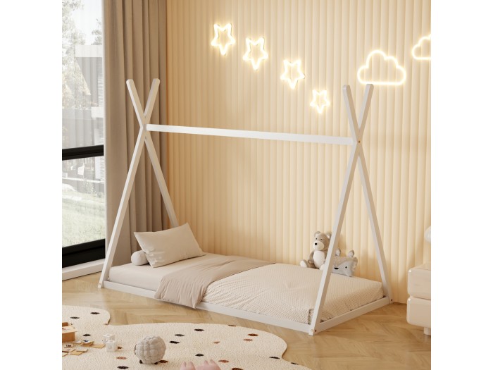 Σας παρουσιάζουμε το «MUNK» που είναι ένα καινούργιο παιδικό κρεβάτι τύπου Montessori που σημαίνει ότι έχει σχεδιαστεί σύμφωνα με το εκπαιδευτικό σύστημα Montessori, σύμφωνα με το οποίο τα παιδιά μαθαίνουν καλύτερα, όταν επιλέγουν μόνα τους τι θα κάνουν. Το χαμηλό ύψος κρεβατιού χωρίς πόδια, βοηθά να εξερευνούν την αυτονομία τους και να ανεβοκατεβαίνουν από το κρεβάτι τους ελεύθερα ανά πάσα στιγμή. Είναι σε διάσταση για μονό στρώμα 90x190 εκ, και αποτελεί μια άριστης ποιότητας, μοντέρνα και ασφαλή επιλογή για το παιδικό δωμάτιο. Είναι ξύλινο σε ΛΕΥΚΟ χρώμα βαμμένο με αβλαβές βερνίκι με βάση το νερό και μη τοξικό, ιδανικό για παιδιά. Το στρώμα τοποθετείται απευθείας σε τάβλες κατασκευασμένες από ξυλεία κόντρα πλακέ. Το κρεβάτι έχει σχήμα σκηνής που θα δώσει μια ευχάριστη, «ζεστή», και παιχνιδιάρικη όψη σε κάθε παιδικό δωμάτιο.