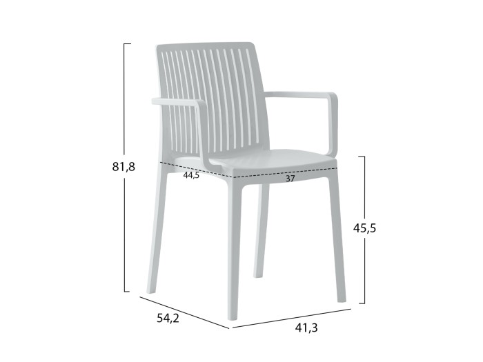 Η πολυθρόνα πολυπροπυλενίου IDA σε ΛΕΥΚΟ χρώμα είναι νέα προσθήκη στην γκάμα μας. Πρόκειται για ιδανική πρόταση για χρήση σε εξωτερικούς χώρους, είτε επαγγελματικούς (χώροι δεξιώσεων, εταιρείες catering, κλπ.) είτε για το σπίτι. Είναι ένα χυτό σύνολο καθίσματος-πλάτης-μπράτσων-ποδιών με ψηλά μπράτσα. Επίσης, η μεσαίου ύψους αεριζόμενη πλάτη και το κάθισμα είναι ικανοποιητικού μεγέθους και είναι σίγουρο ότι θα ικανοποιήσουν όλους όσοι καθίσουν σε αυτή την πολυθρόνα.