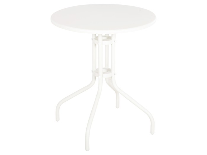 Το LINO είναι ένα στρογγυλό τραπέζι κατασκευασμένο εξολοκλήρου από μέταλλο σε ΛΕΥΚΟ χρώμα. Η επιφάνεια στηρίζεται σε μια κολώνα με τέσσερα πόδια. Ιδανικό για πληθώρα χρήσεων που αν συνδυαστεί με τις κατάλληλες καρέκλες θα αναβαθμίσει την εικόνα κάθε εξωτερικού χώρου.
