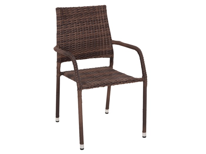 Μεταλλική πολυθρόνα εξωτερικού χώρου MORNER επενδυμένη με wicker σε όψη rattan σε χρώμα ΚΑΦΕ. Η πολυθρόνα έχει ψηλά μπράτσα με στρογγυλεμένες γωνίες αλλά το κύριο χαρακτηριστικό της είναι η ψηλή πλάτη της, που την καθιστά ιδιαίτερα αναπαυτική. Μια πολυθρόνα λιτή και κομψή, θα ικανοποιήσει με την πρακτικότητά της κάθε επαγγελματία ή ακόμα και ιδιώτη.