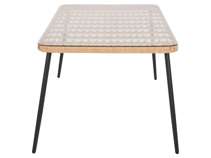Το ορθογώνιο τραπέζι εξωτερικού χώρου της σειράς επίπλων ALLEGRA έχει ΜΑΥΡΟ μεταλλικό σκελετό με 4 πόδια. Το επάνω μέρος του σκελετού είναι επενδυμένο με συνθετικό Rattan σε ΜΠΕΖ(φυσικό) χρώμα και στρογγυλεμένες γωνίες, έτσι ώστε να τοποθετηθεί το γυαλί ασφαλείας της επιφάνειας. Ένα κλασικό, πια, σχέδιο που μπορείτε να το ταιριάξετε με πολλές διαφορετικές καρέκλες ή πολυθρόνες, είτε ίδιας είτε διαφορετικής φιλοσοφίας.