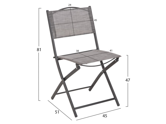 Ο σκελετός της καρέκλας είναι μεταλλικός με ηλεκτροστατική βαφή, ενώ το πανί textilene είναι προδιαγραφών 1Χ1. Το textilene είναι ένα παχύ, ισχυρό και ανθεκτικό πολυεστερικό ύφασμα. Σημαίνει ότι είναι κατασκευασμένο από πολυεστερικά νήματα επικαλυμμένα με PVC.