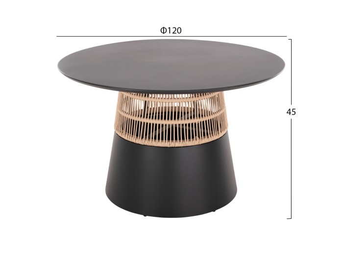 Το SAEID είναι ένα στρογγυλό (στυλ ροτόντα) τραπέζι αλουμινίου σε ικανοποιητικές διαστάσεις σε ΑΝΘΡΑΚΙ χρώμα. Το τραπέζι στηρίζεται σε μια κωνική και κυλινδρική κατασκευή από ΑΝΘΡΑΚΙ αλουμίνιο και σχοινί σε ΜΠΕΖ χρώμα. Αυτό το τραπέζι θα αναβαθμίσει αισθητικά κάθε εξωτερικό επαγγελματικό χώρο, είτε ακόμα και στο σπίτι, ενώ μπορεί να ταιριάξει με πολλά διαφορετικά στυλ και χρώματα, όπως και με διαφορετικά στυλ καρέκλας.