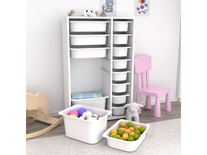Η SANI είναι μια συρταριέρα με πλαίσιο από μελαμίνη σε χρώμα ΛΕΥΚΟ, με 14 ΛΕΥΚΑ συρτάρια από πολυαιθυλένιο (πλαστικό) σε δύο στήλες και σε διαφορετικά μεγέθη. Ιδανική συρταριέρα για την καλύτερη οργάνωση του παιδικού δωματίου.