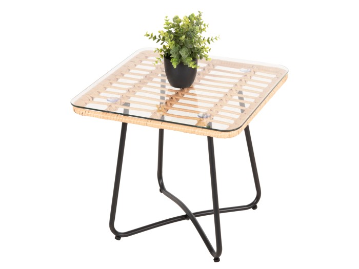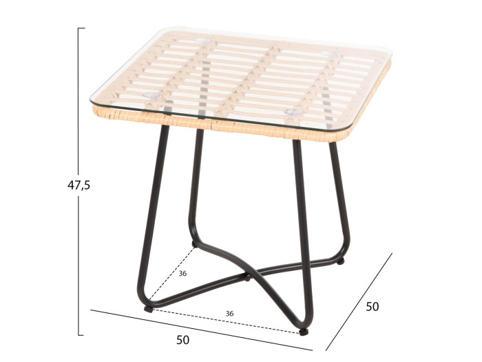Το GERRY είναι ένα τετράγωνο τραπέζι σαλονιού με στρογγυλεμένες γωνίες. Στηρίζεται σε μια ΜΑΥΡΗ μεταλλική βάση. Η επιφάνεια είναι από φυσικό Rattan σε φυσικό χρώμα, και αυτή αποτελεί την βάση πάνω στην οποία τοποθετείται το γυαλί ασφαλείας. Ένα πανέμορφο τραπέζι, το οποίο αν συνδυαστεί και με καρέκλες ίδιας αισθητικής θα δώσει μια πινελιά πολυτέλειας στον χώρο.