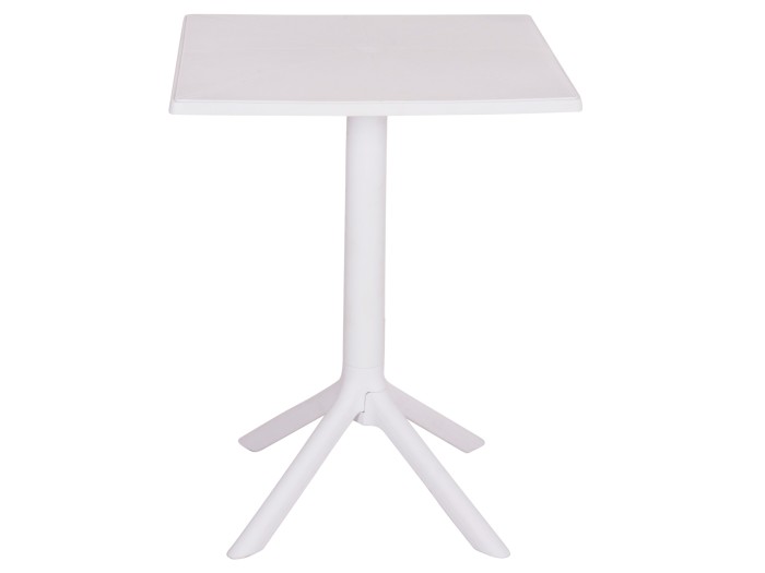 Το τραπέζι πολυπροπυλενίου TERRIN σε ΛΕΥΚΟ χρώμα είναι η ιδανική πρόταση για χρήση σε εξωτερικούς χώρους, είτε επαγγελματικούς (χώροι δεξιώσεων, εταιρείες catering, κλπ.) είτε για το σπίτι. Το τραπέζι είναι τετράγωνο, ενώ η στήριξη γίνεται με μια κολώνα στο κέντρο που καταλήγει σε 4 πόδια («νύχια»).